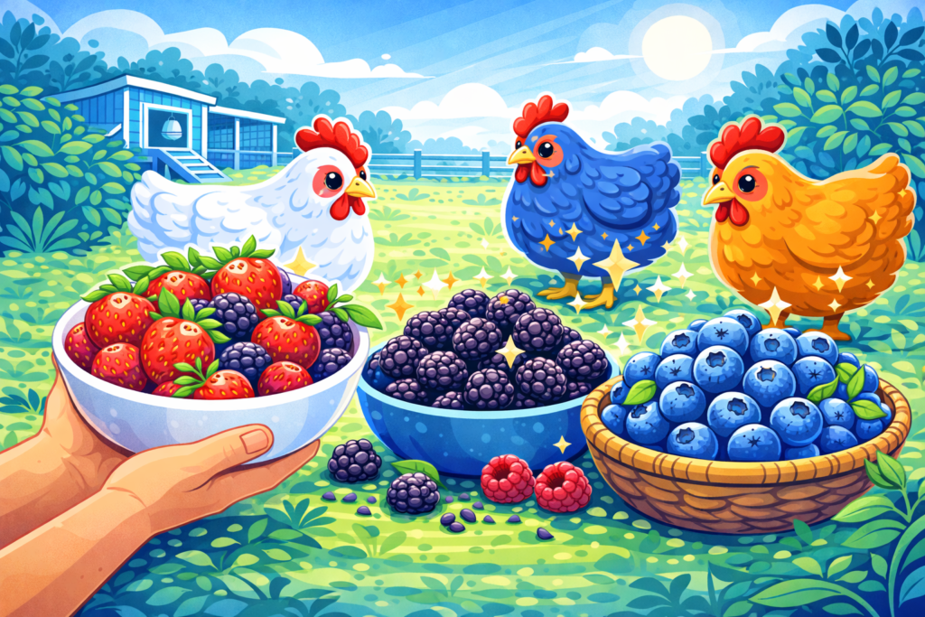 These berries fit well into backyard chicken treats and can be offered more often than grapes.
