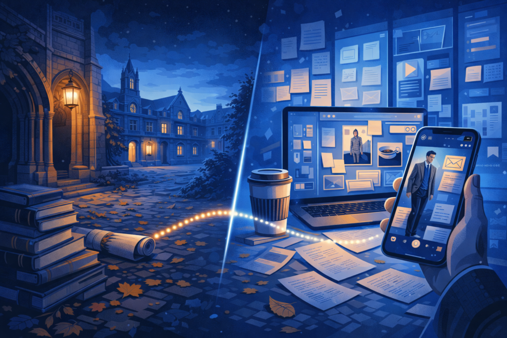 Although its inspiration is old, dark academia truly bloomed online. Tumblr, Pinterest, and later TikTok gave the aesthetic a name and shared language. Through mood boards and outfit photos, people connected over shared visuals and ideas. This rise through online culture helped shape dark academia into a modern fashion identity.
