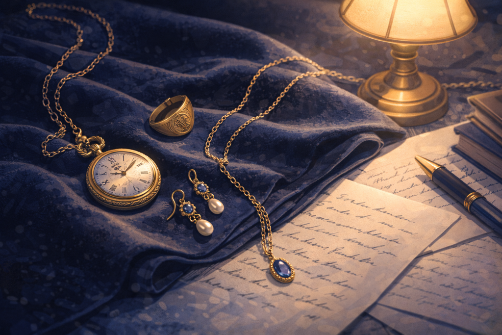Vintage jewelry adds history and character to dark academia outfits. Simple rings, lockets, signet rings, and delicate chains feel personal rather than flashy. These pieces often look slightly worn, which adds charm instead of looking messy. The goal is subtle elegance. Jewelry in dark academia fashion should feel like it has a story, not like it was made just to follow trends.