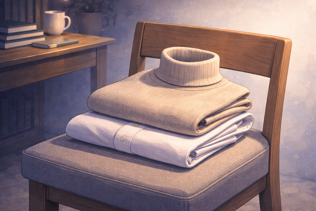 | Turtleneck sweater | Cotton or wool | Soft and flexible | Feels cozy yet refined |
