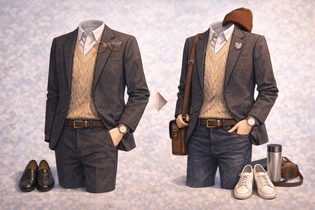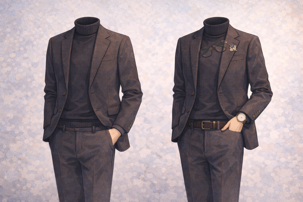 Next, select one or two key clothing pieces to build around. This could be a tweed blazer, a wool coat, or a cozy turtleneck. These items act as the anchor of your outfit. Once you have a strong base piece, the rest of your clothing can stay simple, supporting the main focus without competing for attention.