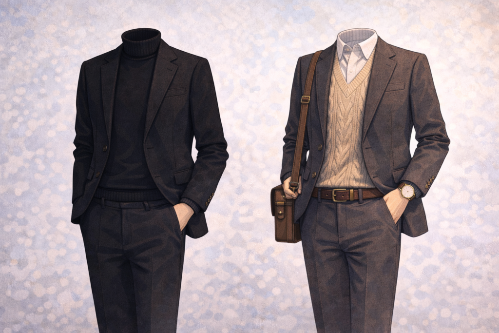 | Layering Style | Deep, structured layers with coats and blazers | Light layering with cardigans and soft jackets |