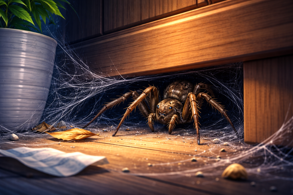 Spiders are experts at hiding. They slip into tiny cracks, behind furniture, inside walls, or under floors in seconds. Their flat bodies and flexible legs help them squeeze into spaces you’d never expect. This hiding behavior keeps them safe during vulnerable spider development stages and explains why they’re hard to find later.
