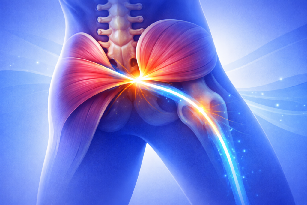 The most common trigger of sciatica nerve pain is pressure on the nerve itself. This pressure often comes from tight muscles in the hips or lower back, especially the piriformis muscle. When these muscles tighten, they squeeze the nerve like a kink in a garden hose. As a result, nerve signals don’t flow smoothly, leading to shooting leg pain, tingling, or burning sensations that travel down the leg.