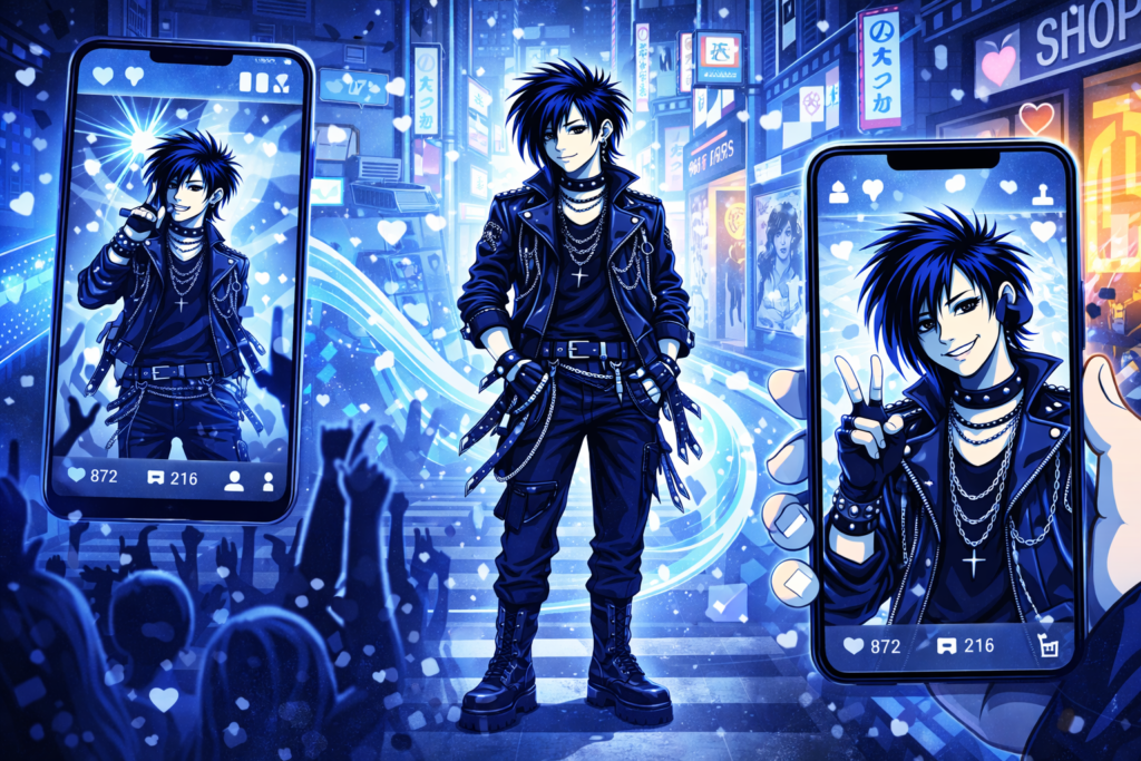 - Music-driven identity – Visual kei style is closely linked to Japanese rock bands and live performances.